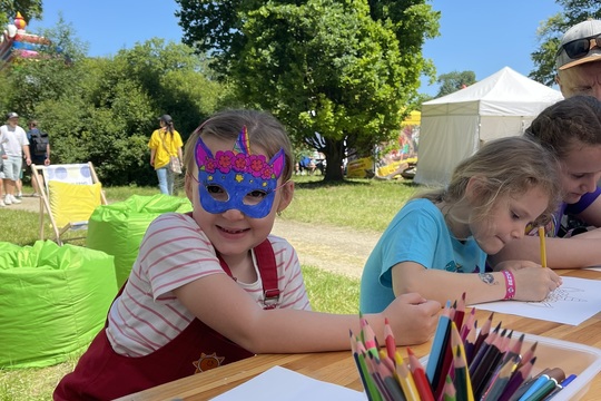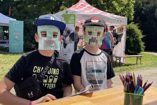 Náš stánek byl plný dětské kreativity – malí návštěvníci si u nás mohli vytvořit vlastní masku, zatímco rodiče si užili chvíli klidu v našem chill-out koutku. Hlavním cílem bylo vykouzlit dětem úsměv na tváři a odměnit je za jejich tvoření. Děti dostaly sešity a rozvrhy hodin, aby mohly v září vyrazit do školy s radostí i s výbavou.